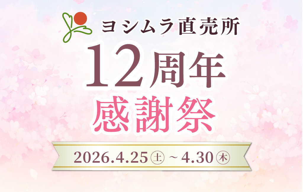 おかげさまで、株式会社ヨシムラ直売所はこの4月で12周年を迎えます。